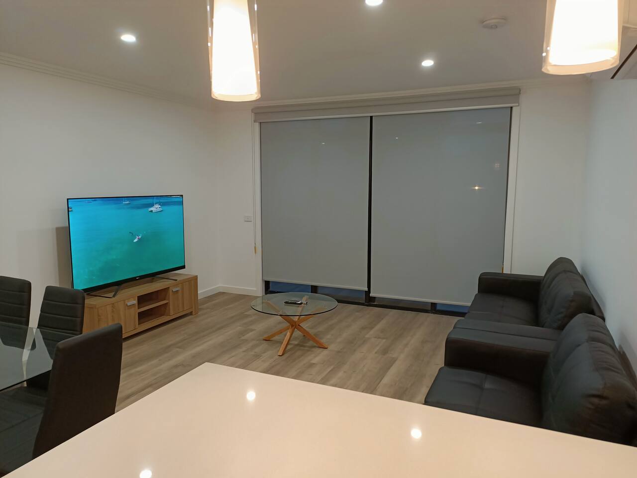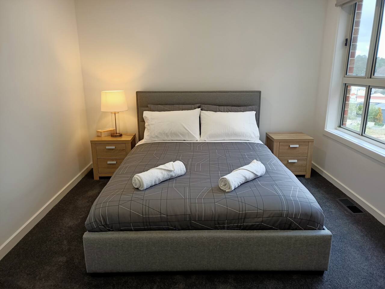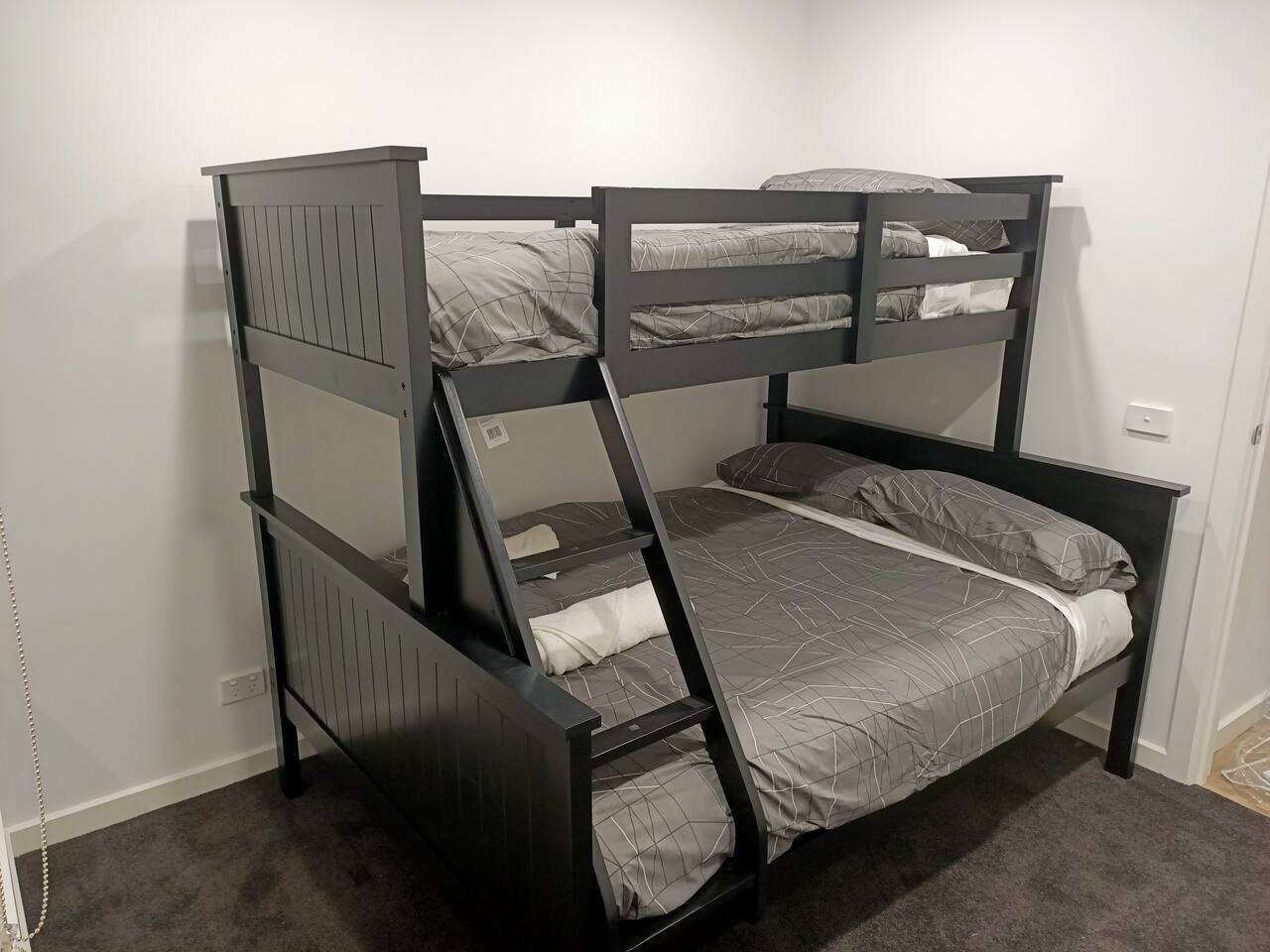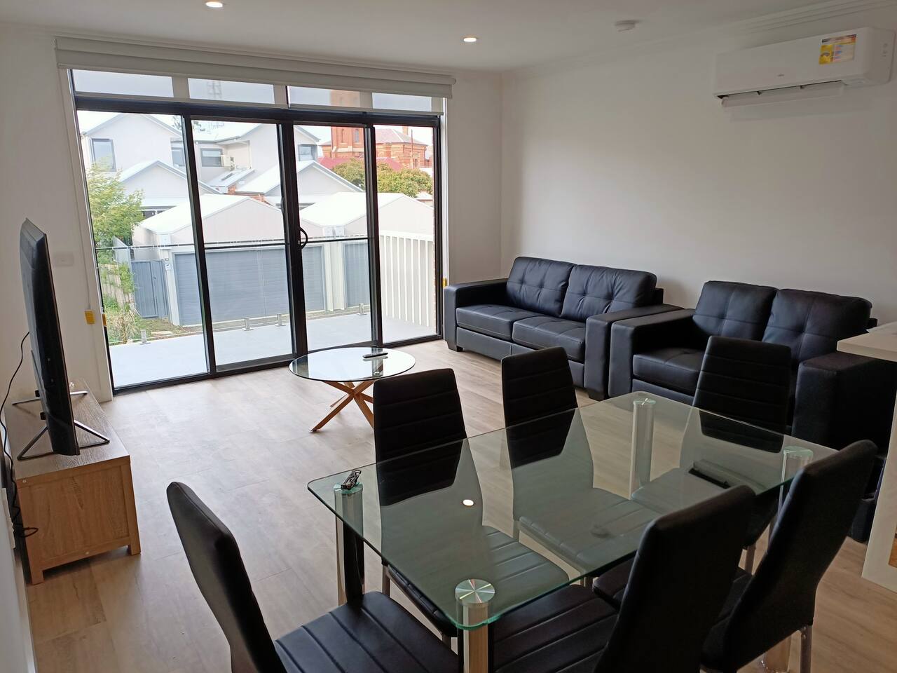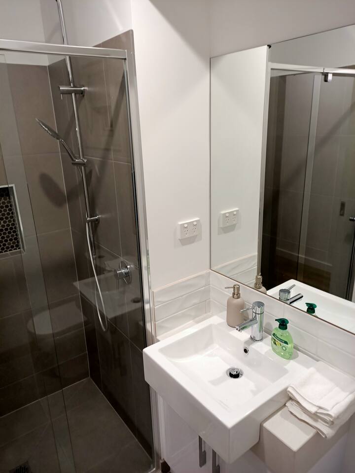 The townhouse is brand new, there are three bedrooms for you to choose from. The master bedroom with a queen bed is located up stairs and has its own en-suite. The two other bedrooms, one with a queen bed, the other with a double bed and a single bunk are located down stairs and share their own bathroom with shower. The open plan kitchen dining and lounge area is a perfect place to relax, and has direct access to the balcony overlooking the laneway.